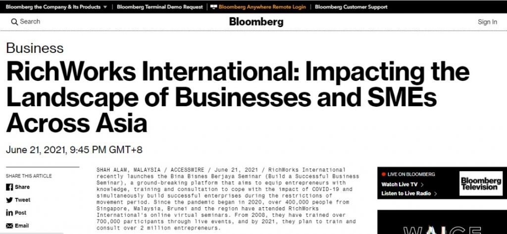 (Sumber Bloomberg : https://www.bloomberg.com/press-releases/2021-06-21/richworks-international-impacting-the-landscape-of-businesses-and-smes-across-asia)